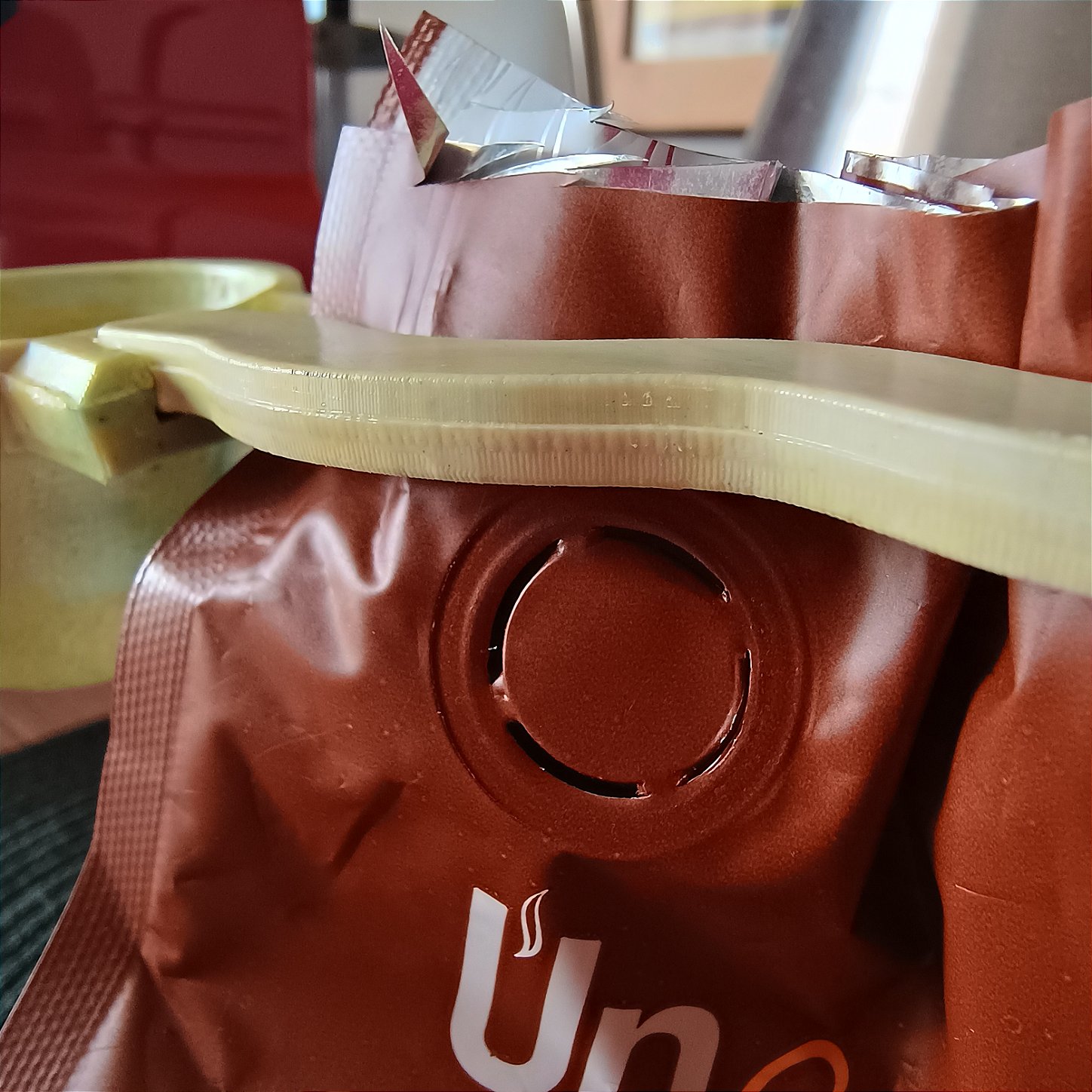 Com um design inspirado em prendedores de cabelo feitos com plástico reciclado, o cabo do Dosador do Futuro permite que você guarde da melhor maneira seus pacotes de café e evite que estraguem mais rápido.