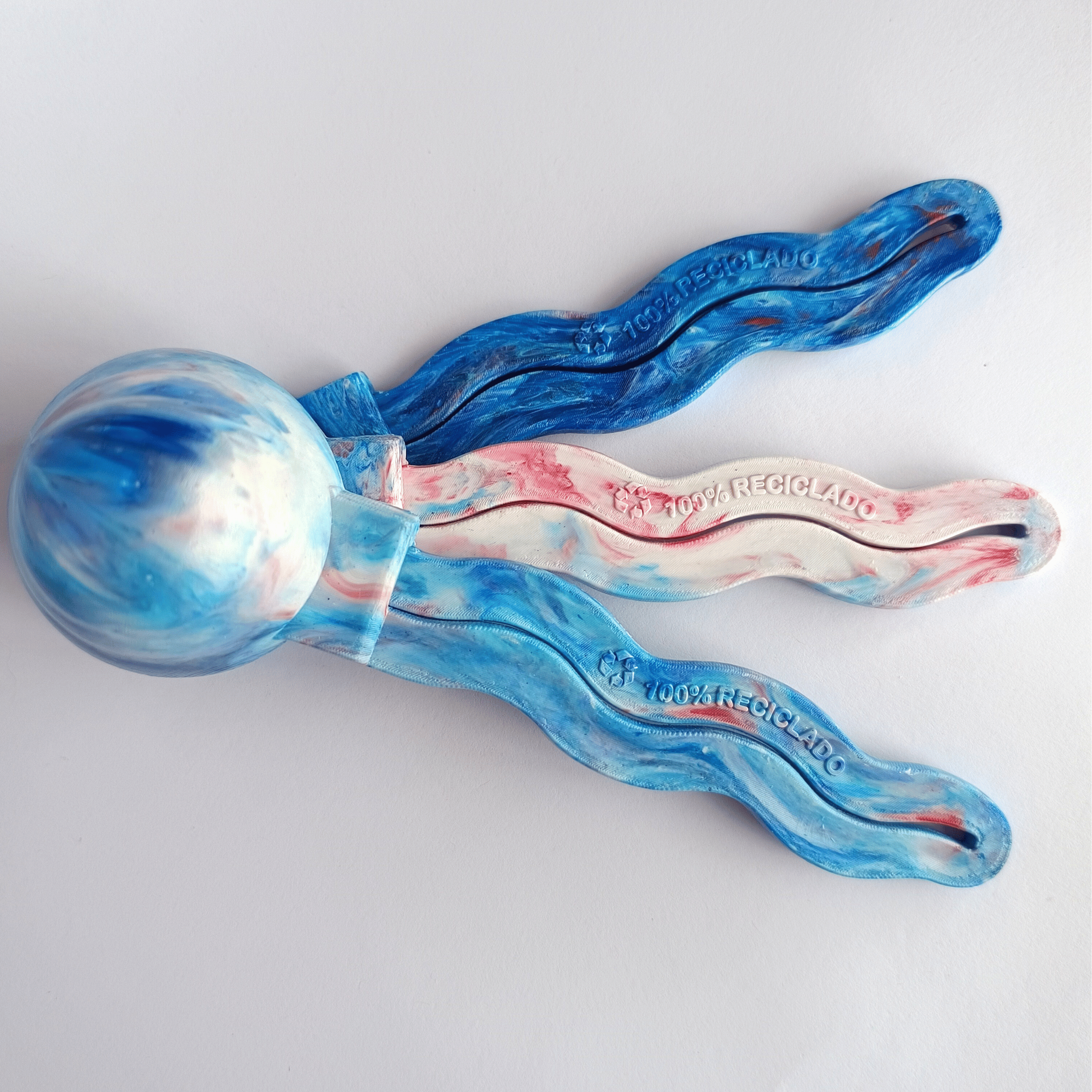 Nenhum dosador é igual ao outro! São 9 tons de cores disponíveis para compra, mas cada tom de cor naturalmente se mistura durante o processo de injeção de plástico reciclado, criando desenhos únicos e inusitados em cada peça. Você terá um acessório exclusivo!