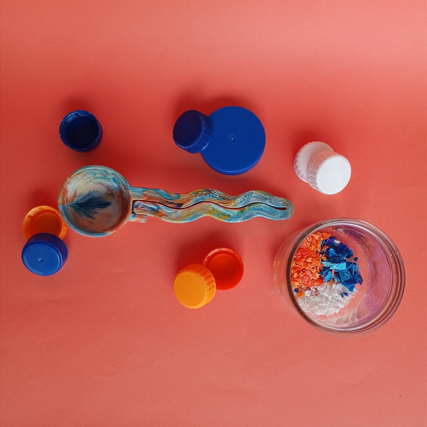 O Dosador do Futuro é o primeiro acessório 2 em 1: colher medidora de café e prendedor de embalagens do mundo, feito 100% com plástico reciclado!