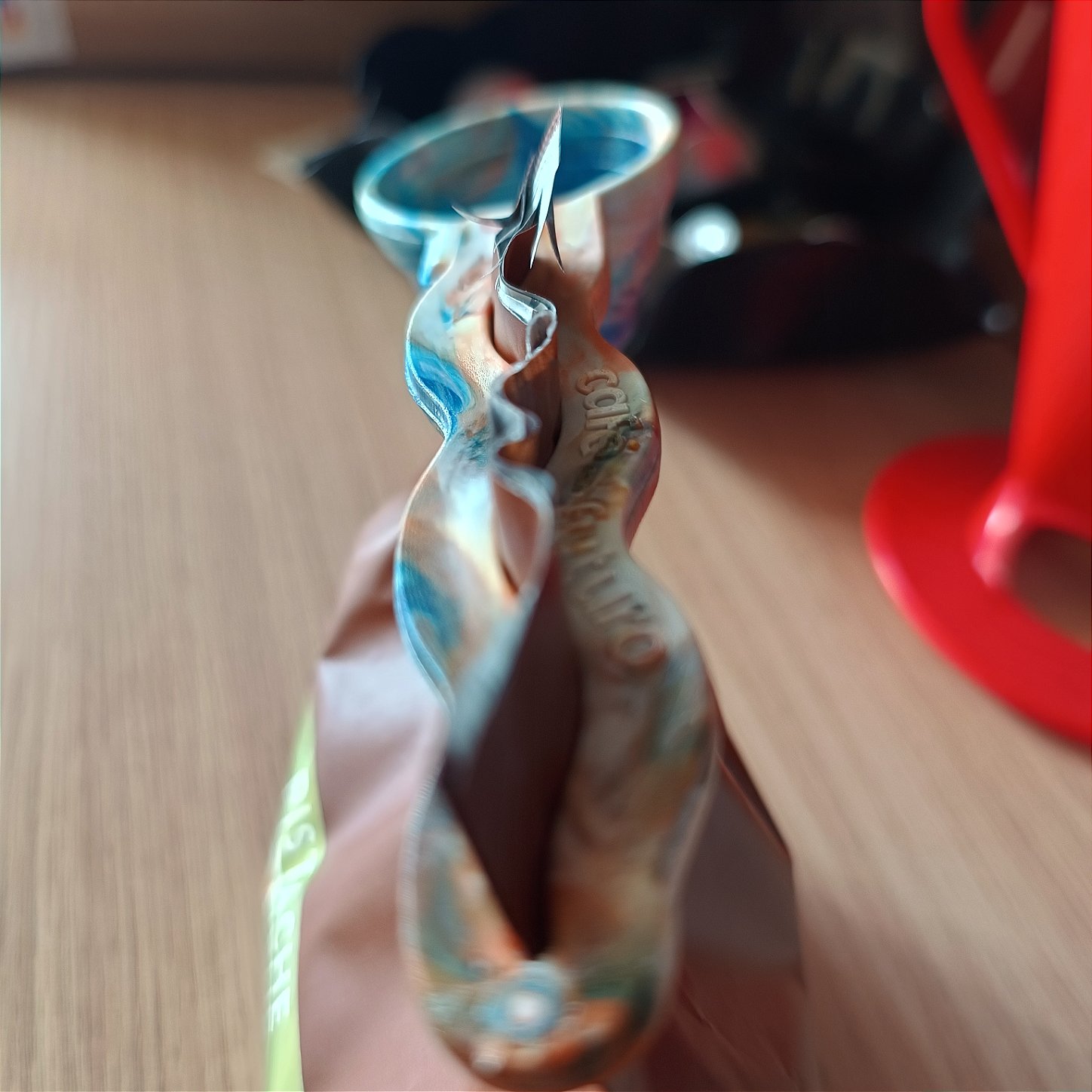 Com um design inspirado em prendedores de cabelo feitos com plástico reciclado, o cabo do Dosador do Futuro permite que você guarde da melhor maneira seus pacotes de café e evite que estraguem mais rápido.