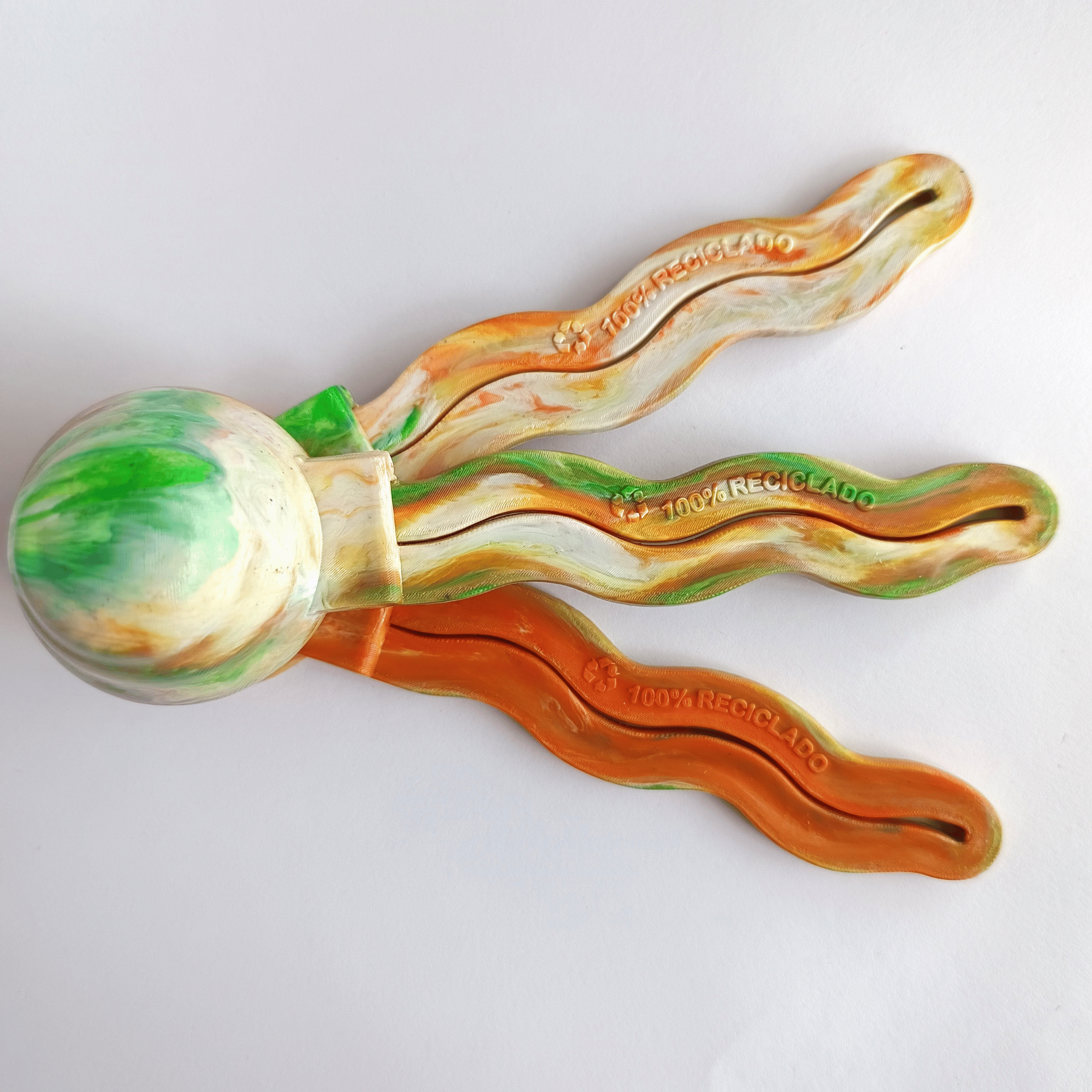 Nenhum dosador é igual ao outro! São 9 tons de cores disponíveis para compra, mas cada tom de cor naturalmente se mistura durante o processo de injeção de plástico reciclado, criando desenhos únicos e inusitados em cada peça. Você terá um acessório exclusivo!